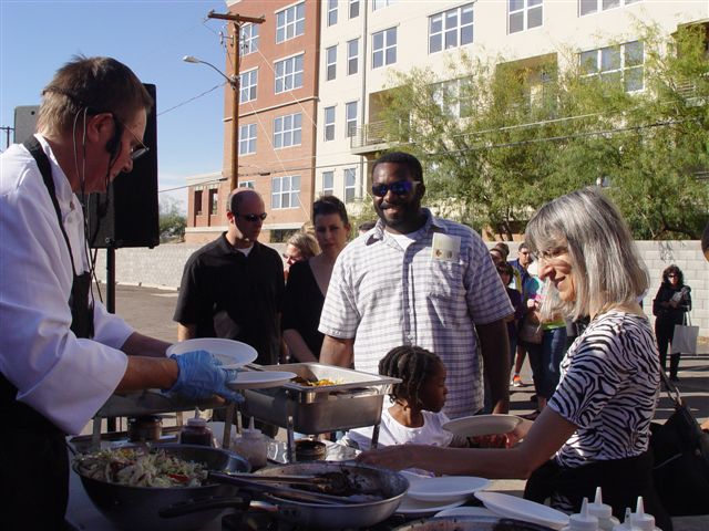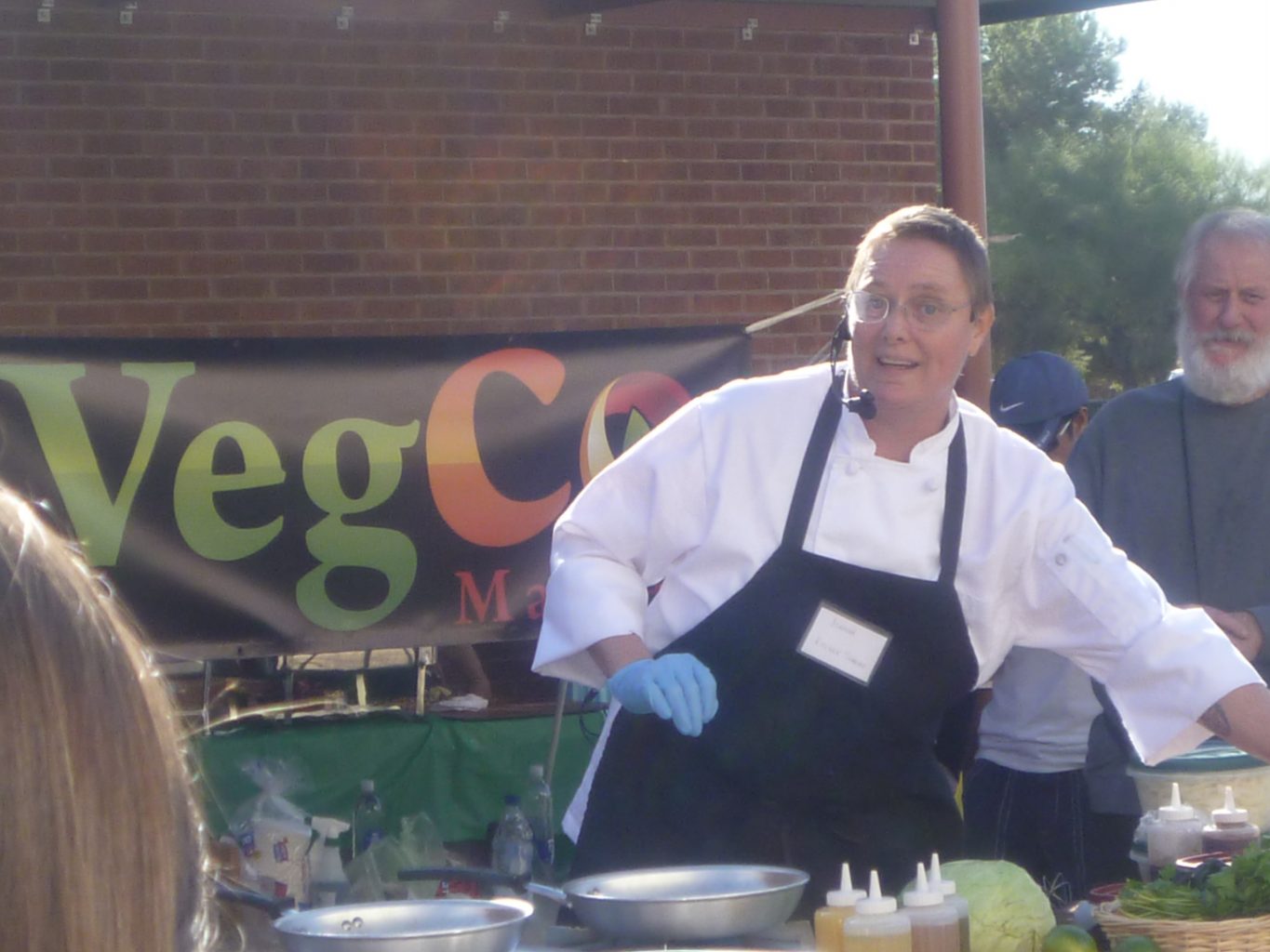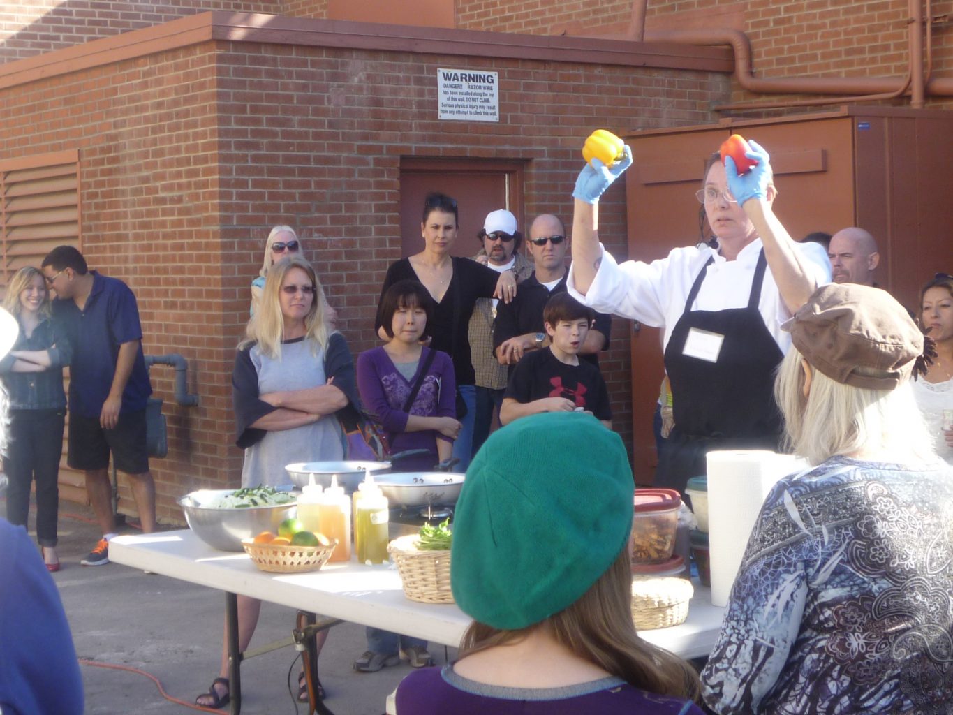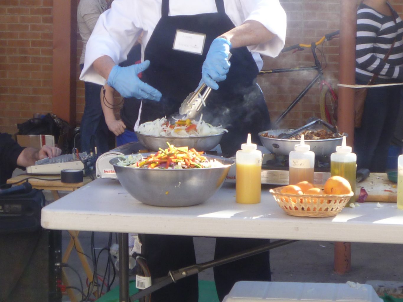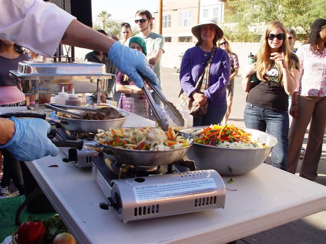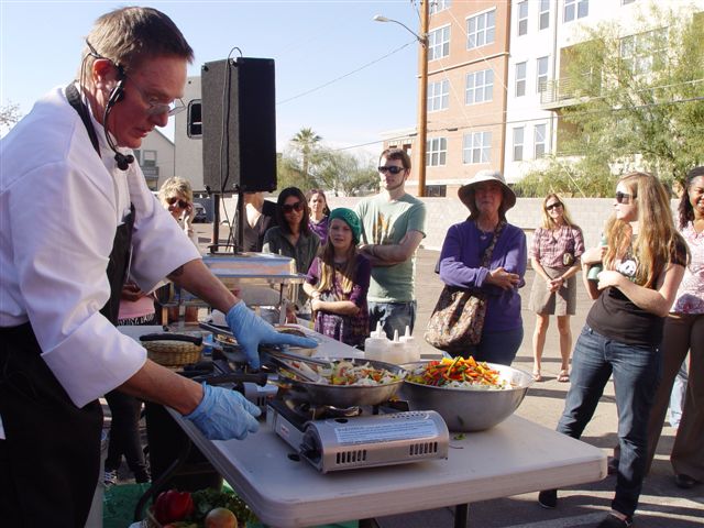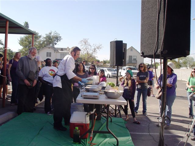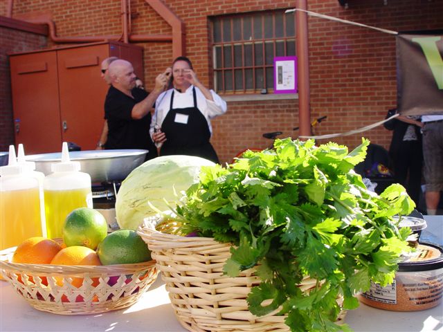 I demonstrated how to make Portabello Steak Fajitas and Citrus Coleslaw. I ran out of mushroom fajitas before I did people, but I still had coleslaw and chili sauce left.