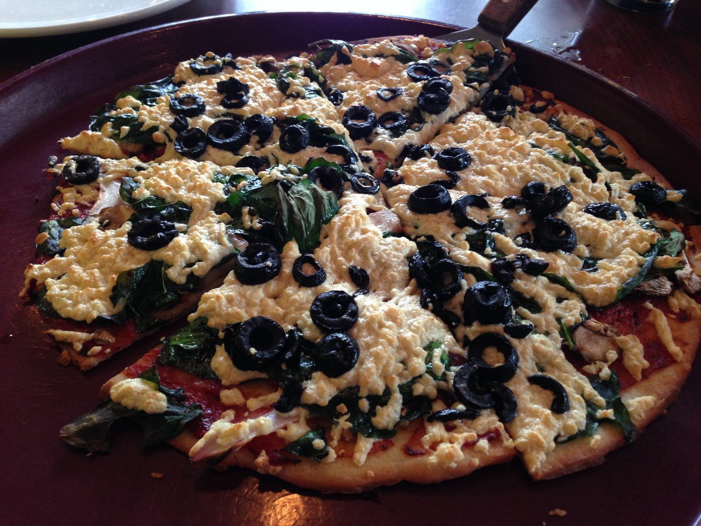 Of course, a trip to Kansas includes a ride to Lawrence, which has grown since I first visited. We went up and down Massachusetts Street, but really had no specific plans for food. We finally settled on Minskeys Pizza Café and Bar and sat down to order, eat, and watch the people go by. We had a filling lunch of gluten free pizza and a veggie ball grinder, a concoction made from bulgher wheat and herbs, covered with red sauce and served on a hoagie roll. I would have been happier if the balls were half the size, and had more sauce. They were a bit dry, and I had to ask for more sauce. I was excited to find vegan cheese as an option in the heart of Kansas. We were able to enjoy it on both the pizza and the sandwich. Restaurant service was a bit slow, but when we finally received our food it was still hot and fresh. We weren’t fawned over, which I appreciate, but a refill on our drinks would have been a nice gesture. Overall it was a nice experience, and I would return to their dining establishment just to have a gluten free pizza that is very close to what I make.